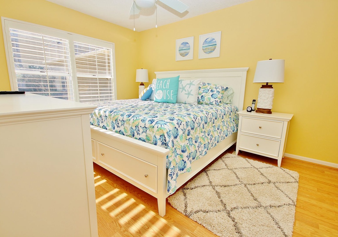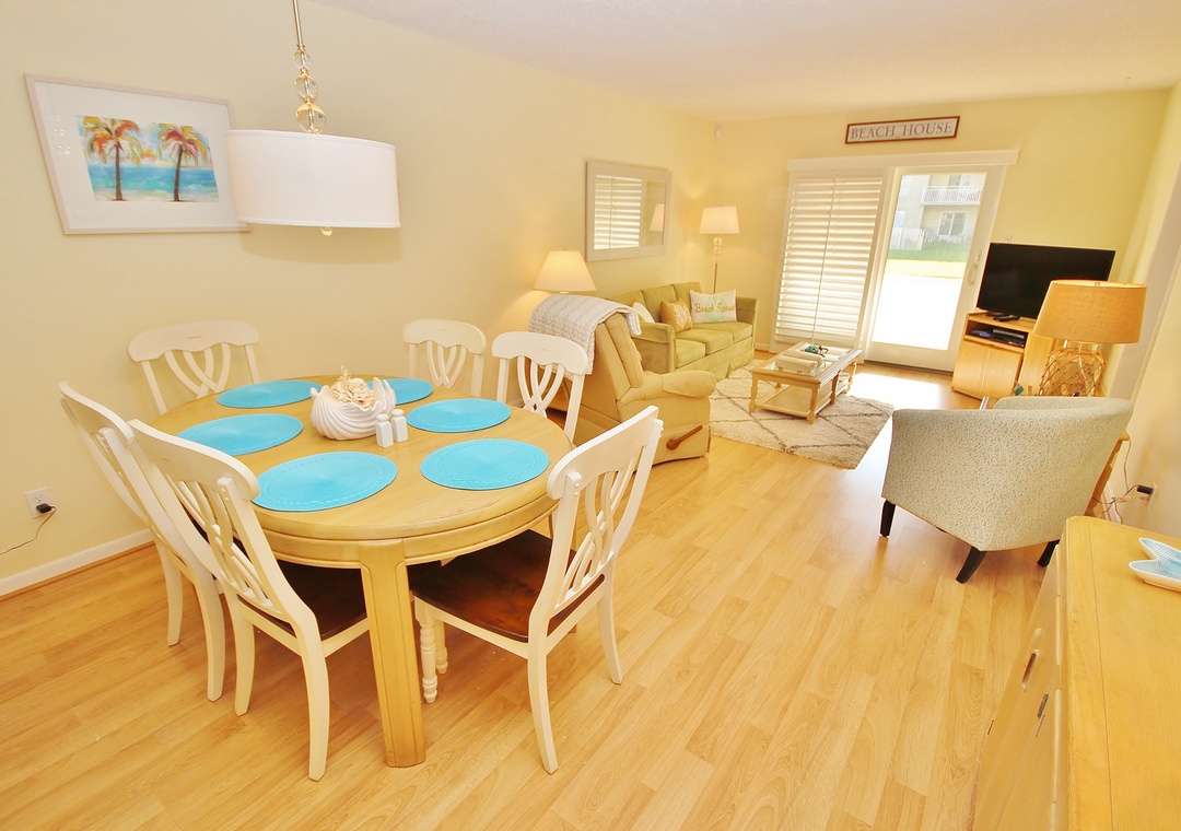 The dining room table is the perfect place for a family meal during your vacation! With placemats that match the décor of the house and enough seating for six, you'll be amazed at how easy it is to clean up later! After dinner, you can go and enjoy a movie or two with your guests. The main living area features cable TV with a Blu-Ray/DVD player and free Wi-Fi. There's also plenty of comfortable seating where you and your guests can spread out and play games.