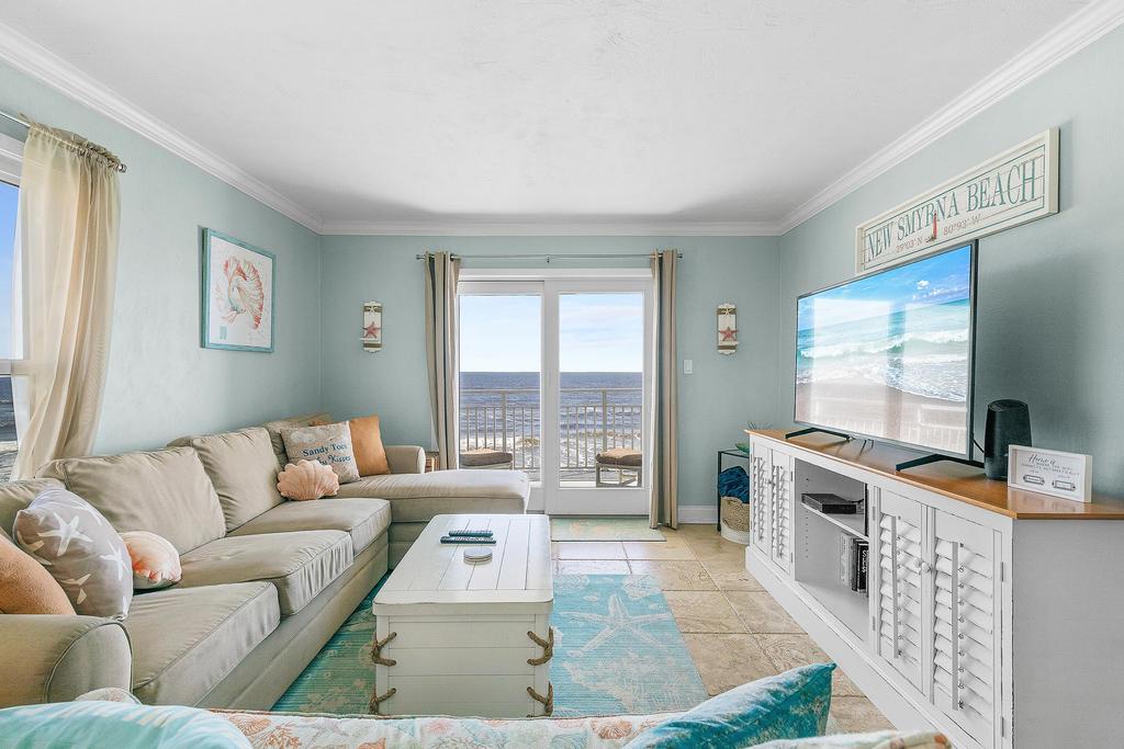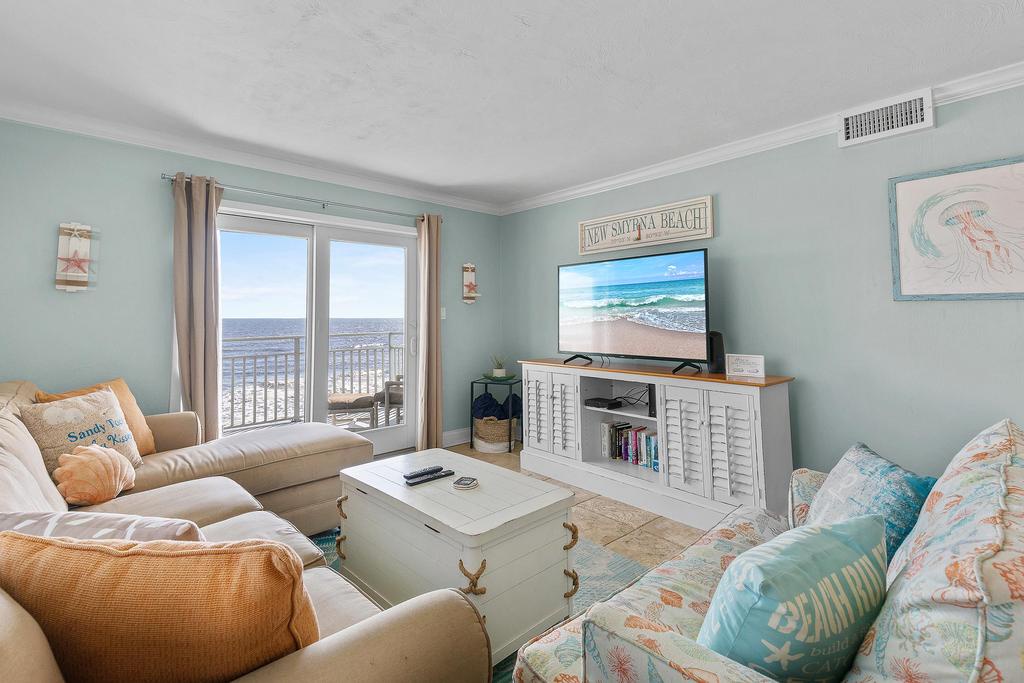 Those that love spending every moment in the sunshine can kick back on the furnished balcony. The balcony has a bird's eye view of the complex grounds, beach access, and NSB's non-driving shore. We recommend drinking your morning cup of coffee here as it has a front row seat to the oceanfront sunrise.