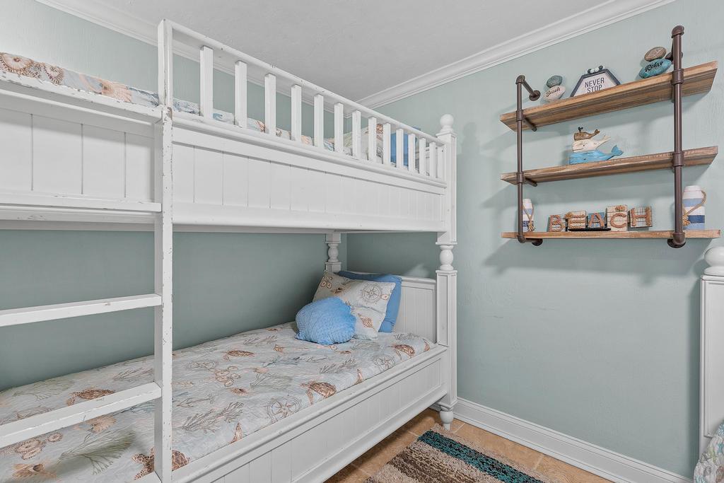 As you enjoy a luxurious 8+ hour rest, the others in your group will have a great night's sleep in the second bedroom. This bedroom hosts a queen and a twin bunk bed. Guests can use the nearby bathroom with a standard bathtub.