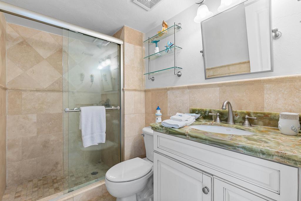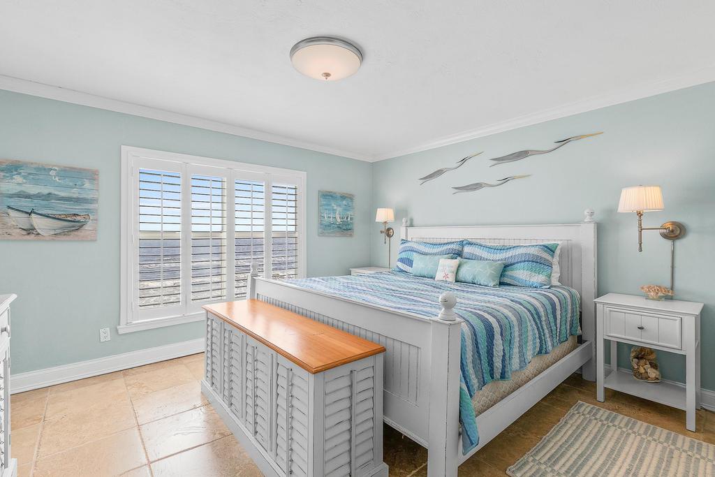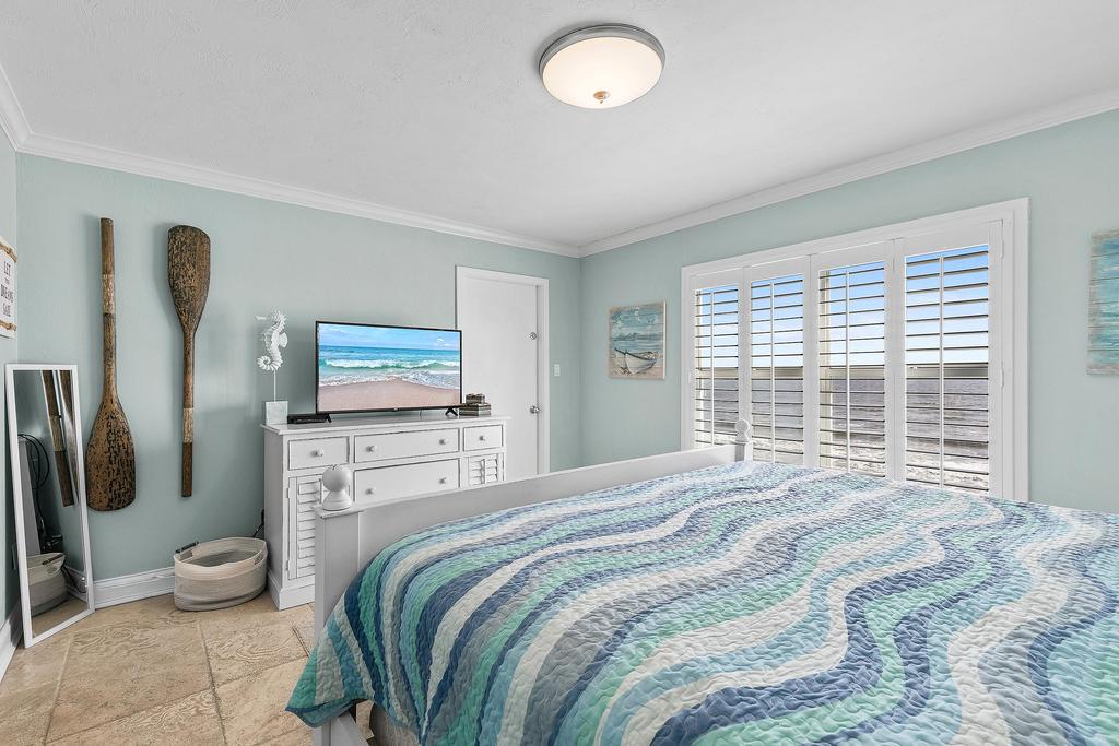 At the end of each day, you'll find a light and airy bedroom awaiting you. The primary bedroom hosts a king bed, Smart TV, and a gorgeous ocean view. Adjoining the bedroom is a bathroom with a walk-in shower and plenty of bath towels.