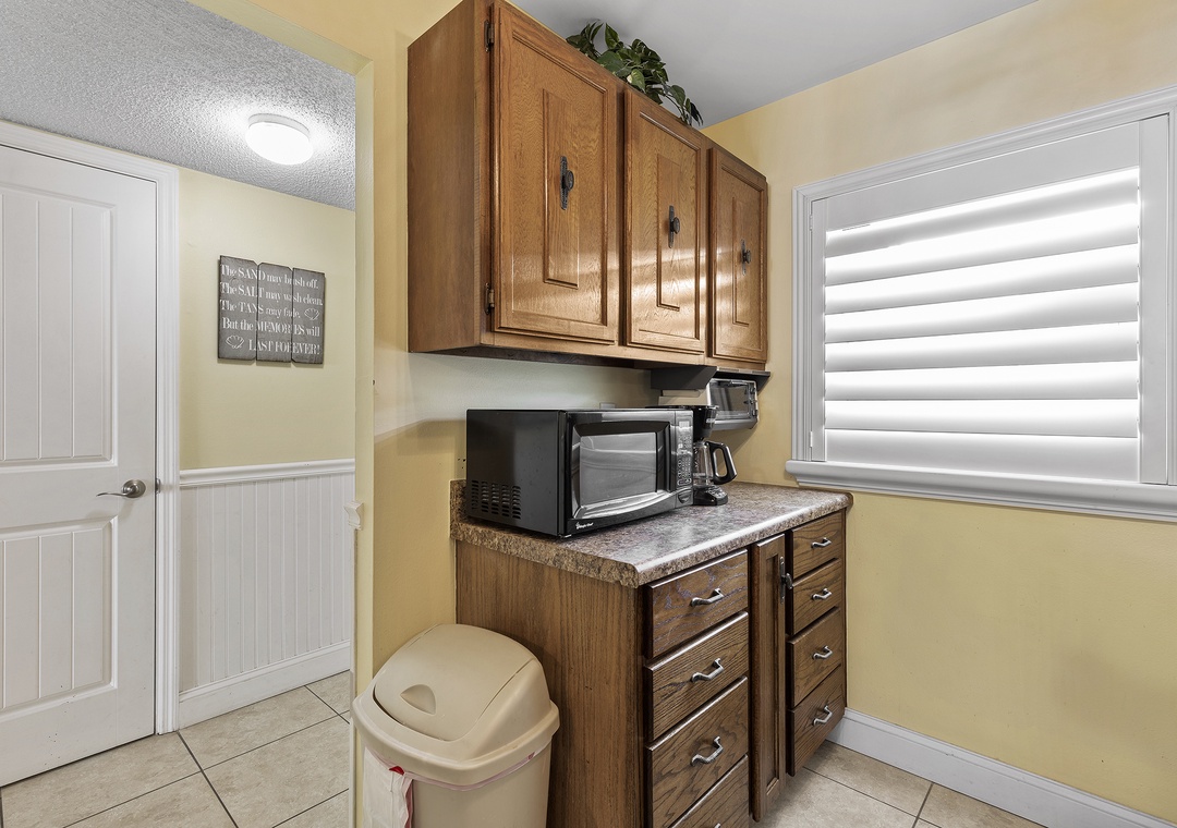 While the rest of your family scatters outdoors, enjoy some peaceful alone time and fully explore your East Coast home away from home. From the foyer, you'll find yourself drawn in to the inviting kitchen on your left. The kitchen exudes a home-like ambiance with its cherry wood cabinetry, warm granite countertops, and stainless steel appliances; just familiarize yourself with the fully stocked cabinets and drawers and you'll feel right at ease cooking in this space! Before you unpack and settle in, treat yourself to a warm afternoon coffee brewed in either the Keurig or drip coffee maker. With so much to explore indoors and out, you'll need the extra caffeine!