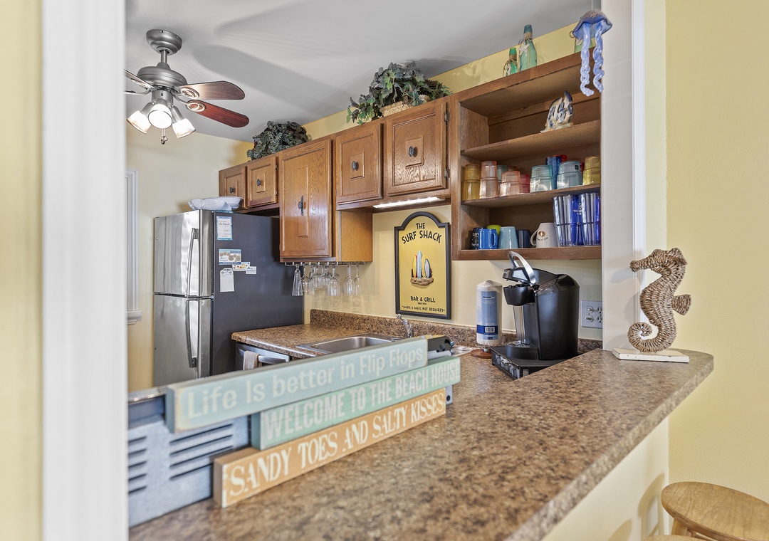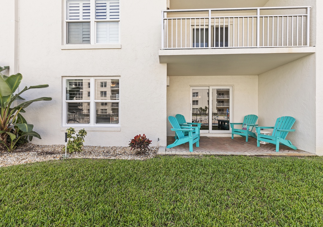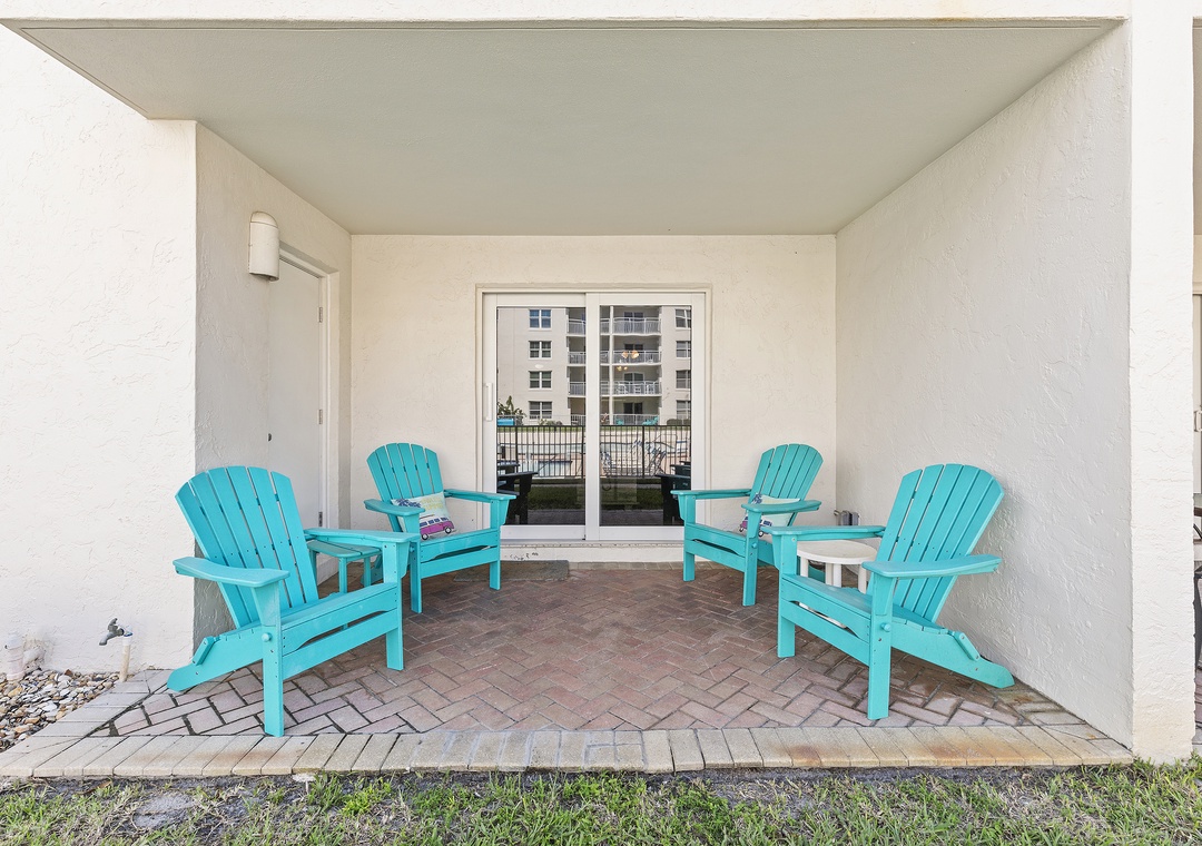 When you're ready to be back soaking up the glorious warmth, step out onto your furnished patio. You'll love how this ground floor unit is just steps away from the complex's many pools and private beach access to surf and sun. Bring dinner outdoors and kick off your evening BBQ using the two large gas grills located behind the pool; just cook it up and enjoy the yummy goodness from the patio's Adirondack chairs.