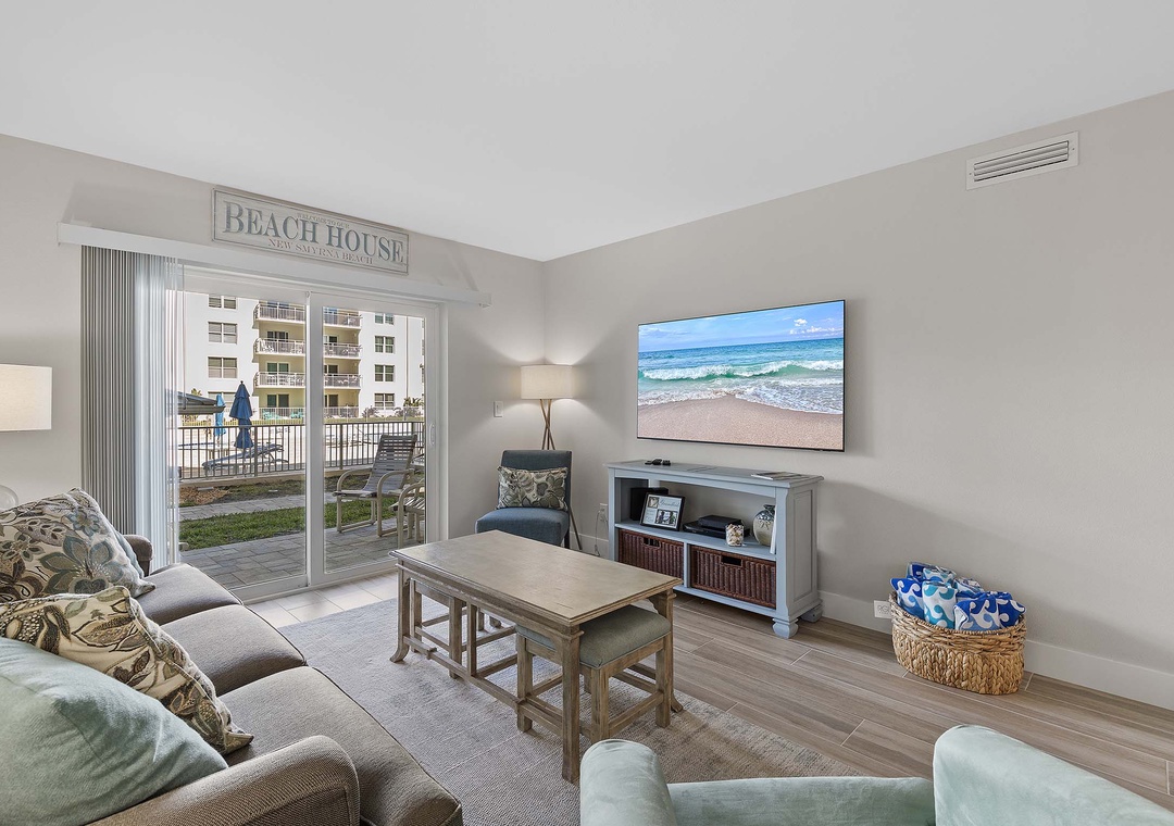 We loved staying at this condo. It is perfect in that the patio looks out into the pool and it’s just steps from the beach. We love how every time we stay this condo gets updated either with new furniture or new upgrades. We like to go to Disney for the day and it only takes 1 hr and 20 minutes to get there from the condo. This condo is nicely decorated and made us feel right at home. We have wonderful memories in New Smyrna and can’t wait to book next year! The master bedroom has a new King Size bed! That is a must!- Posted: 4/26/2019